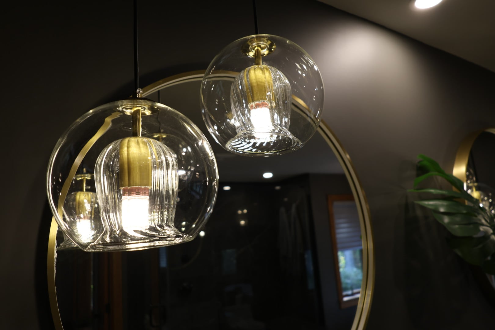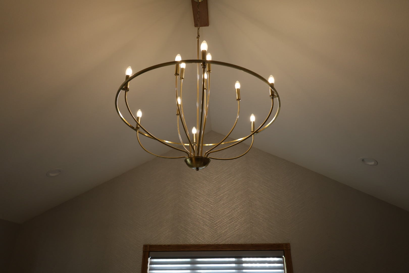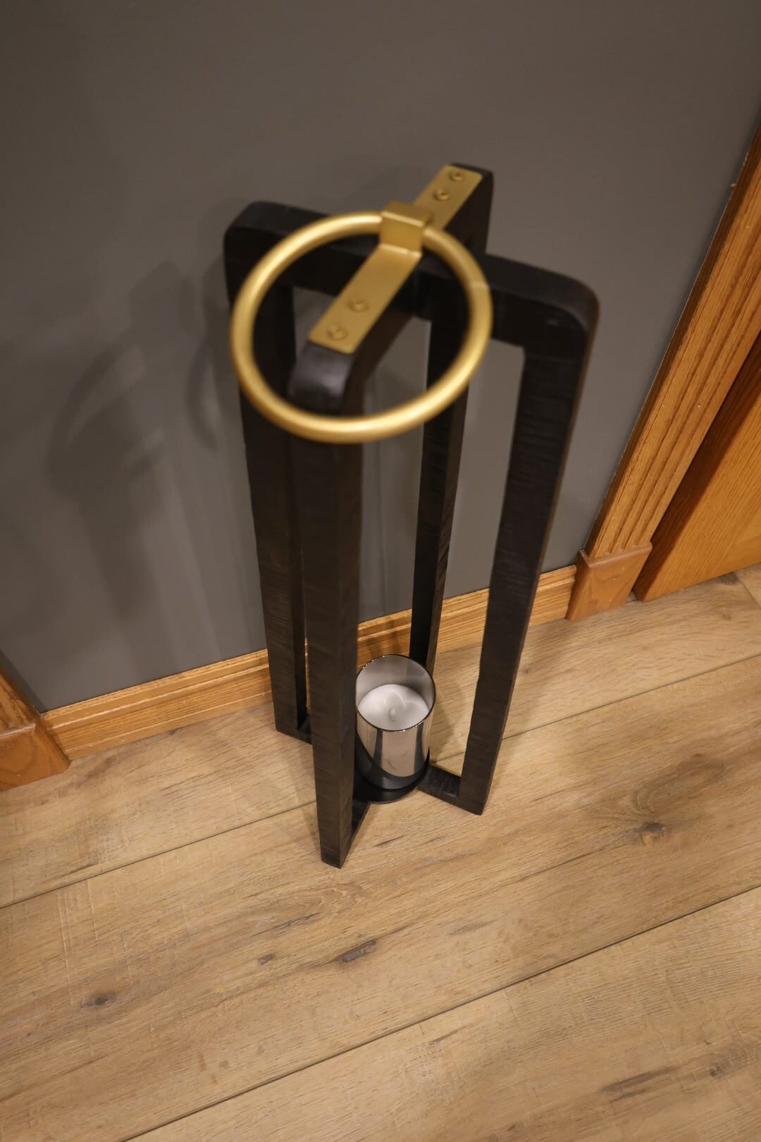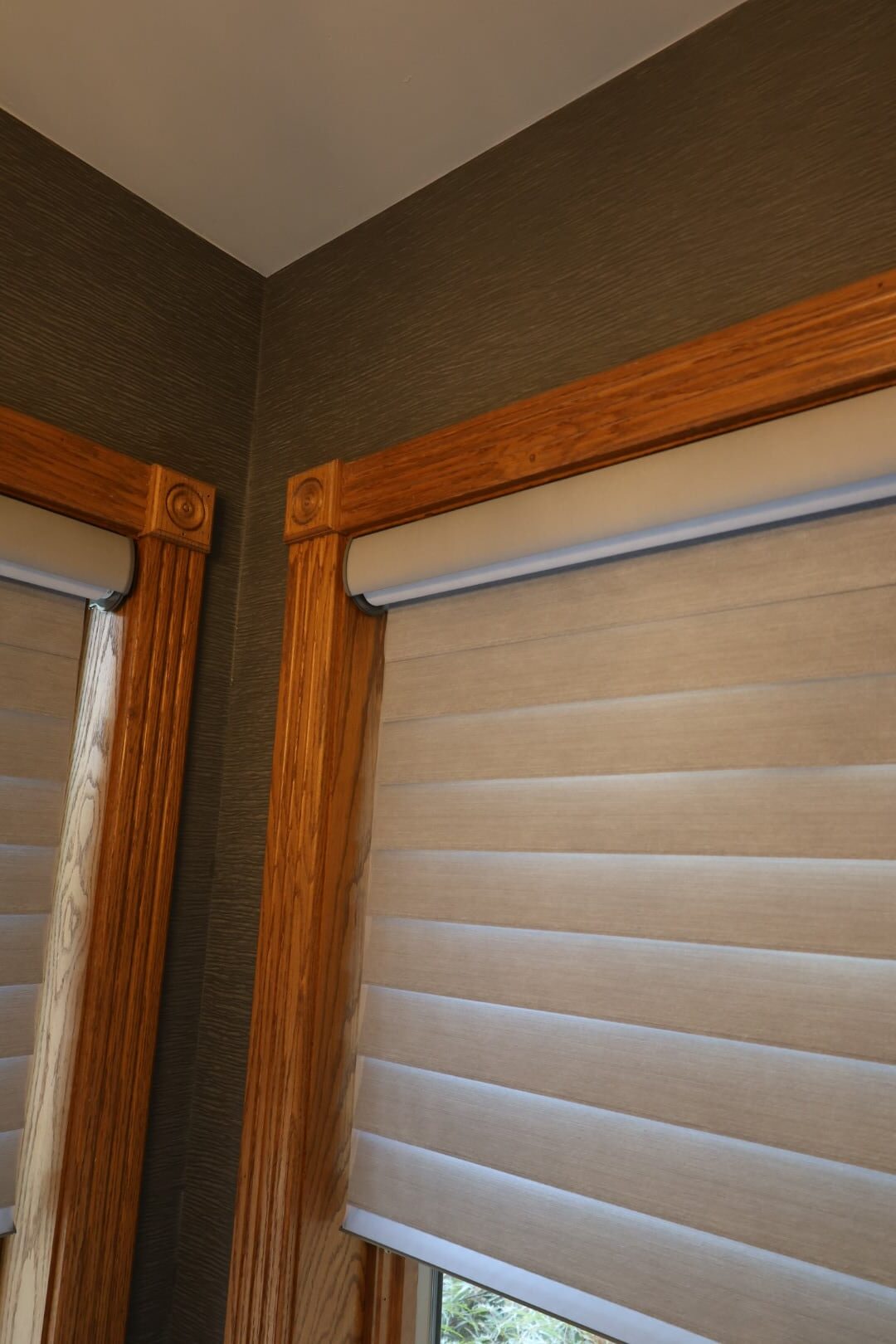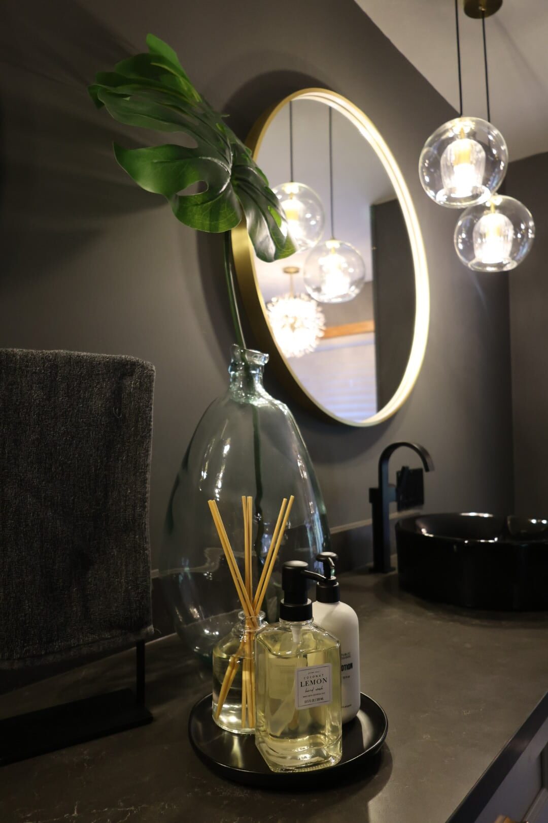 Step inside a serene blend of rustic charm and modern sophistication in our latest remodel—a seamless transformation of a bathroom, bedroom, and home office into a warm, cohesive retreat. Each space was thoughtfully curated with furniture, fixtures, and finishes that celebrate texture, natural tones, and timeless design. In the bathroom, matte stone counters and black sinks pair wonderfully with weathered wood accents and handmade ceramic tiles, all grounded by a soft, neutral rug that adds comfort underfoot. The bedroom exudes a cozy, layered aesthetic by bringing elements of nature into the room through distressed wood furniture, modern wallpaper designs elegantly simple lighting fixtures. In the office, a two-tone wood desk flanked by rich leather seating sits under a modern, farmhouse light with panoramic views of the forest that would make even Thoreau jealous. Throughout the remodel, every selection was made to harmonize with the rustic chic design style—where nature meets refined finishes and functionality. The result is a trio of spaces that feel intentionally connected and effortlessly lived in.