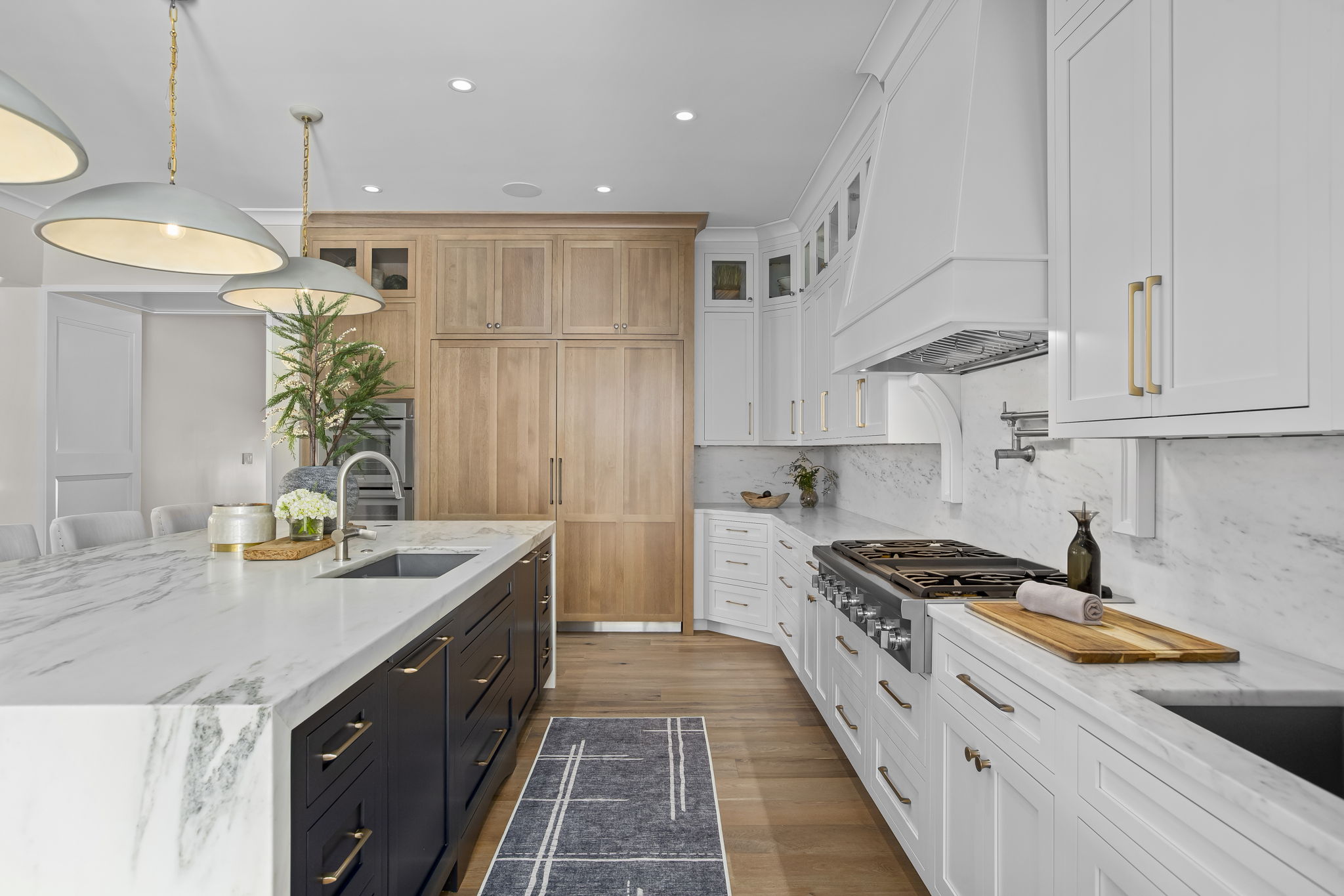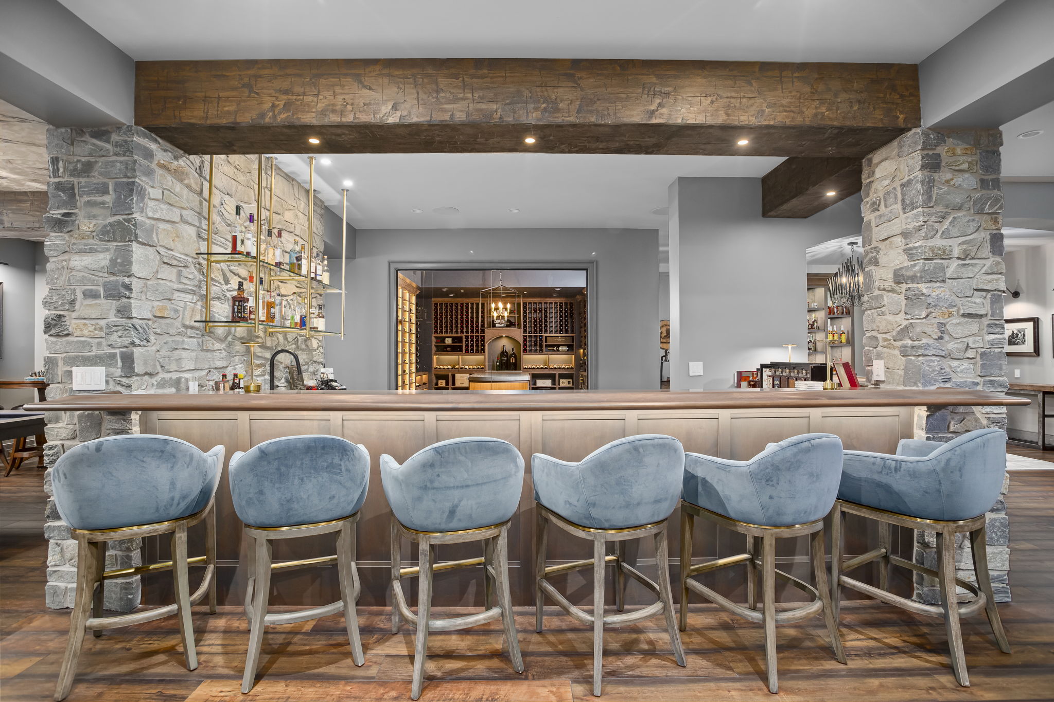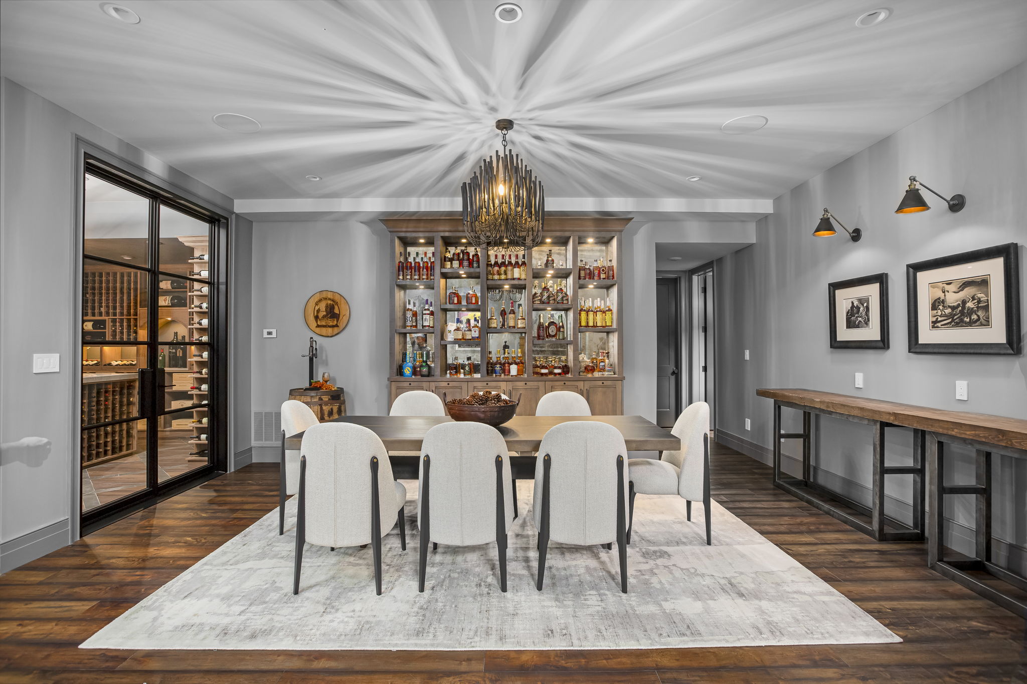 Every space in your home should allow you to live and feature something that captures your inner self. In this new build, SK Interiors customized every space in the house, both inside and outside, to create a welcoming atmosphere equally designed for entertaining and introspection. The golf room and billiards room offer the perfect opportunity to engage in spirited banter while tasting selections from the 1,500 bottle wine cellar or exquisite bourbon collection carefully displayed on custom built oak display shelves. Within the main living space, SK creates a focal point in every room. From the unrepeatable beauty of the natural stone in the foyar to the majestic lighting throughout the home, every room leaves you captivated by its beauty. The outdoor space is designed to be a seamless extension of the indoor liveable space and captures the essence of earth, water, fire and wind. This masterpiece allows people to explore connections with family, friends and themselves.
