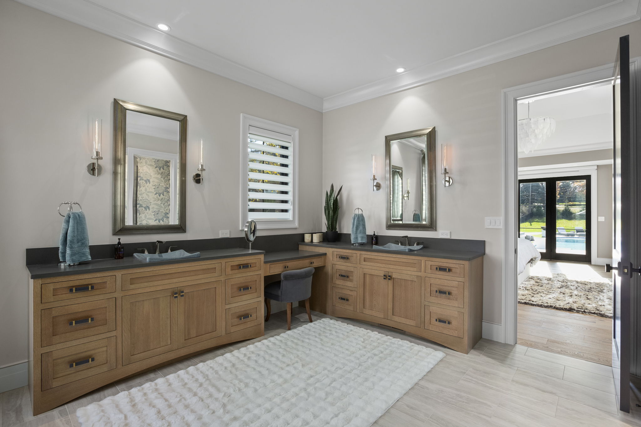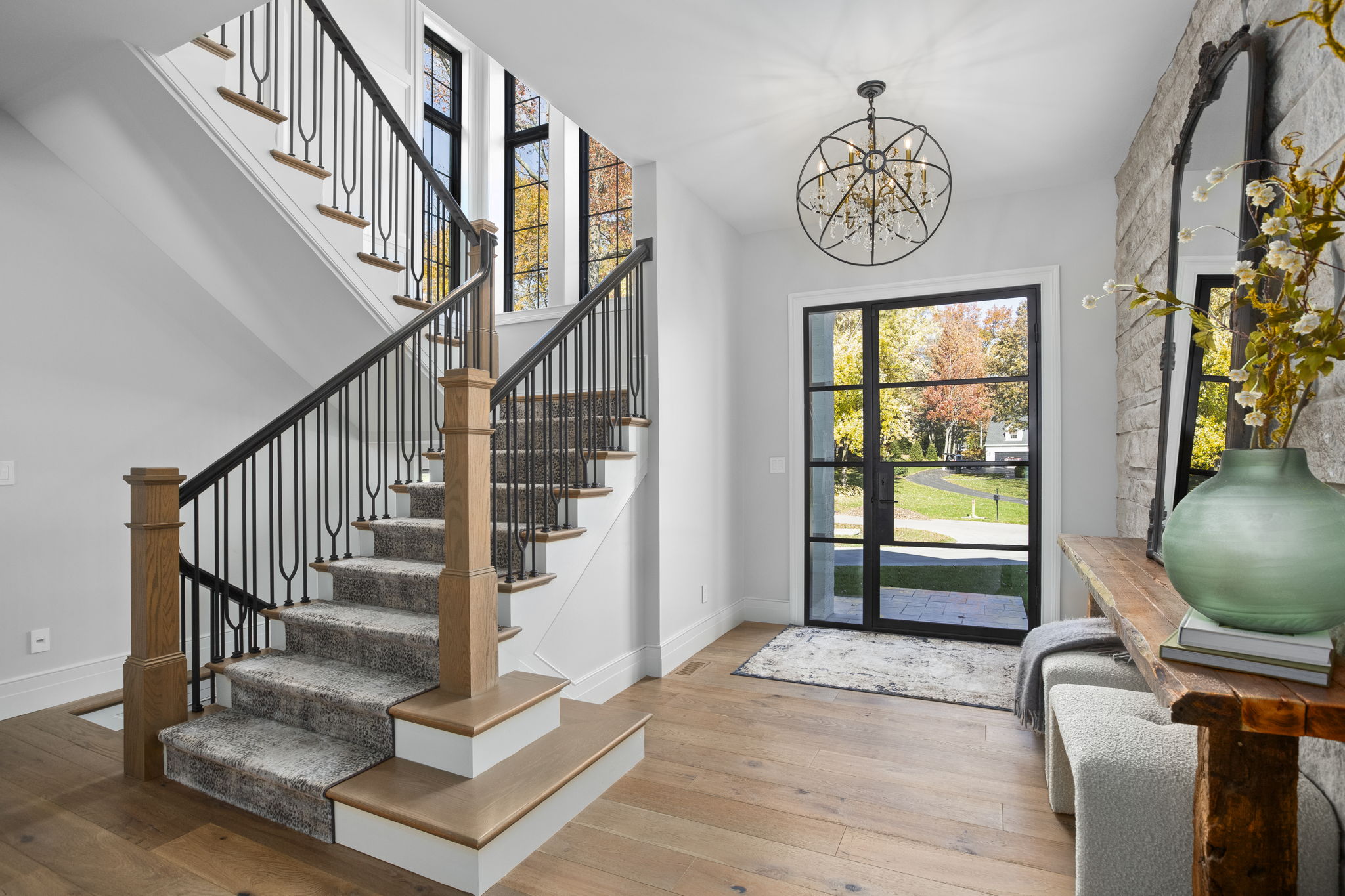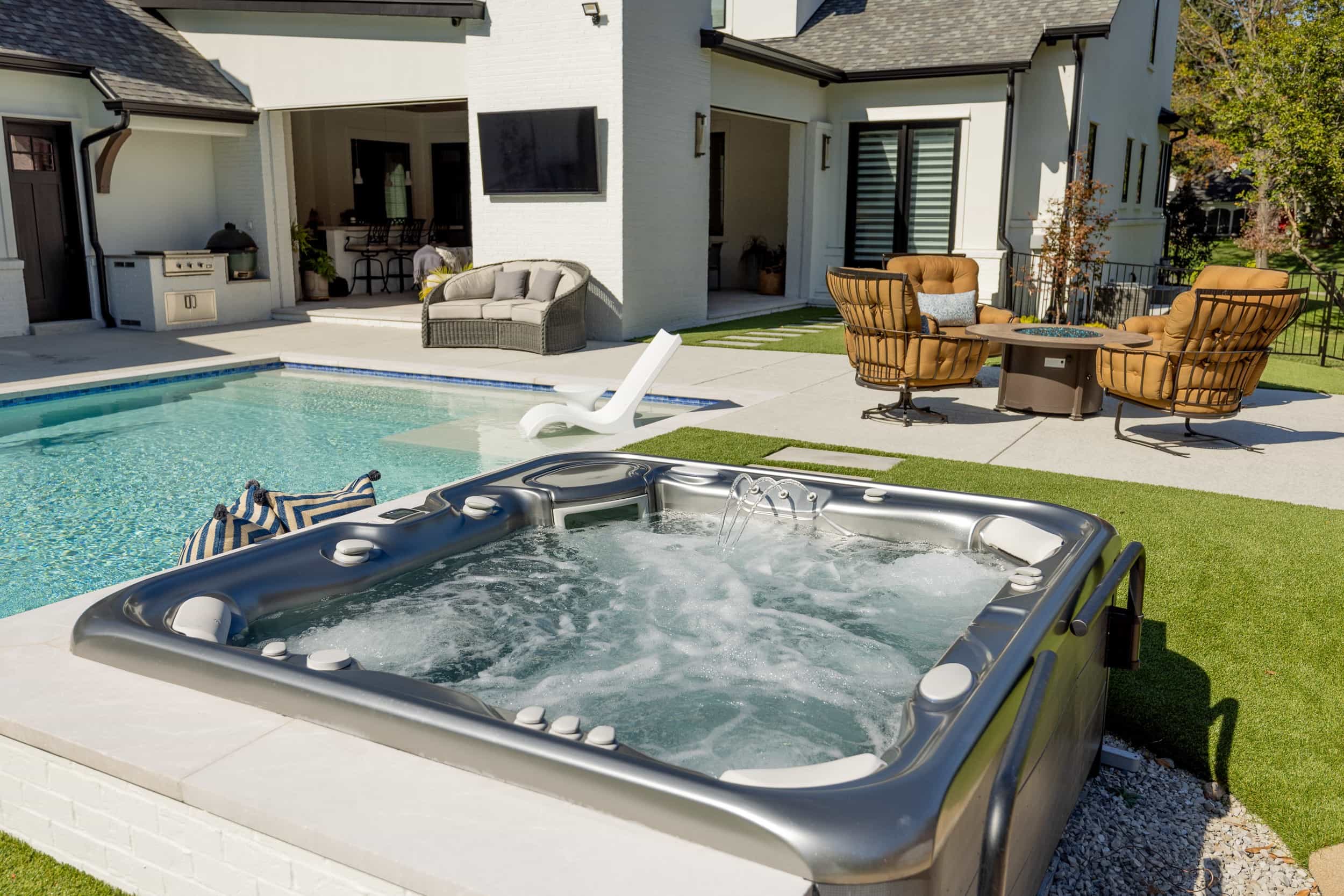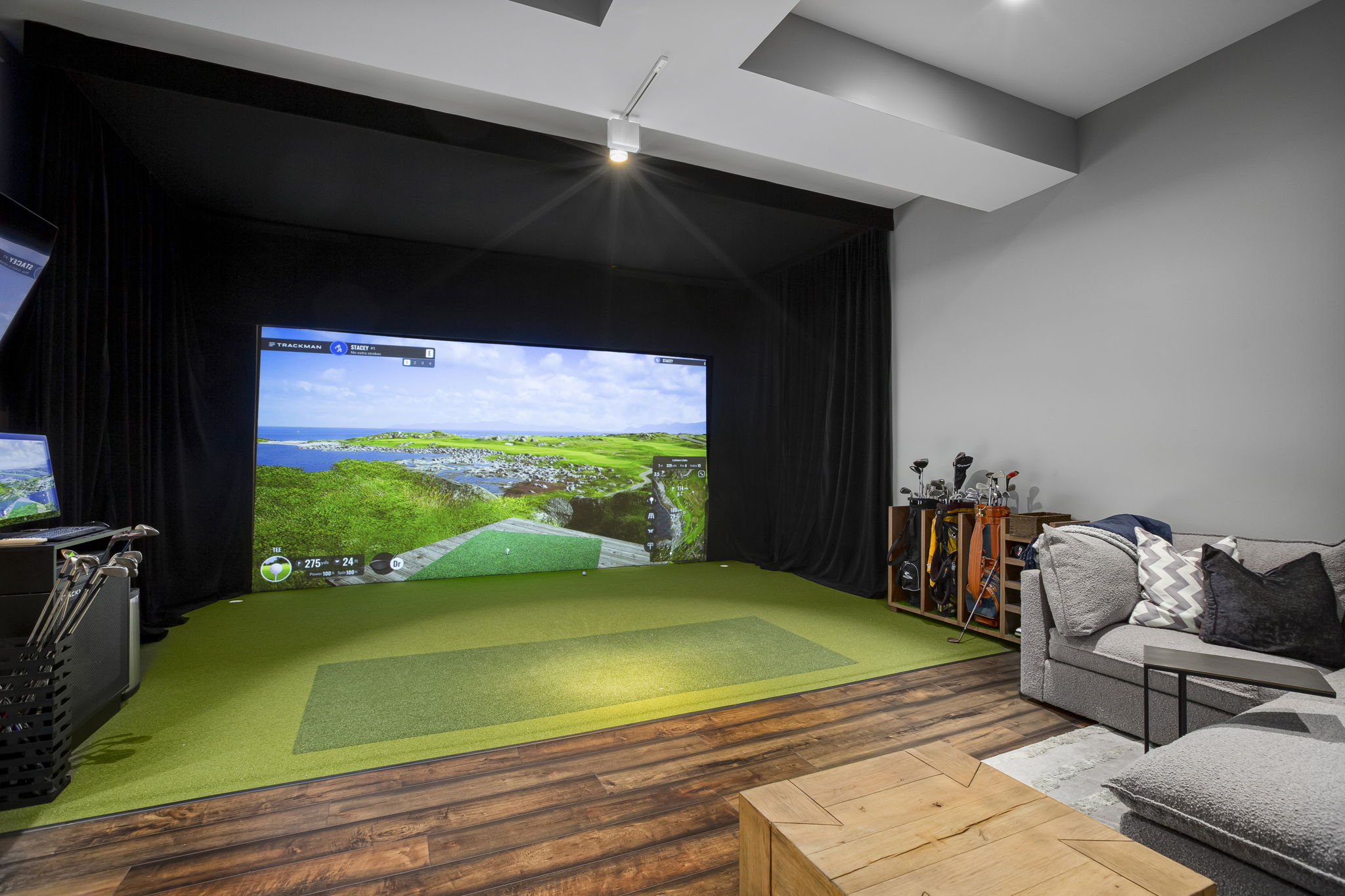 Every space in your home should allow you to live and feature something that captures your inner self. In this new build, SK Interiors customized every space in the house, both inside and outside, to create a welcoming atmosphere equally designed for entertaining and introspection. The golf room and billiards room offer the perfect opportunity to engage in spirited banter while tasting selections from the 1,500 bottle wine cellar or exquisite bourbon collection carefully displayed on custom built oak display shelves. Within the main living space, SK creates a focal point in every room. From the unrepeatable beauty of the natural stone in the foyar to the majestic lighting throughout the home, every room leaves you captivated by its beauty. The outdoor space is designed to be a seamless extension of the indoor liveable space and captures the essence of earth, water, fire and wind. This masterpiece allows people to explore connections with family, friends and themselves.